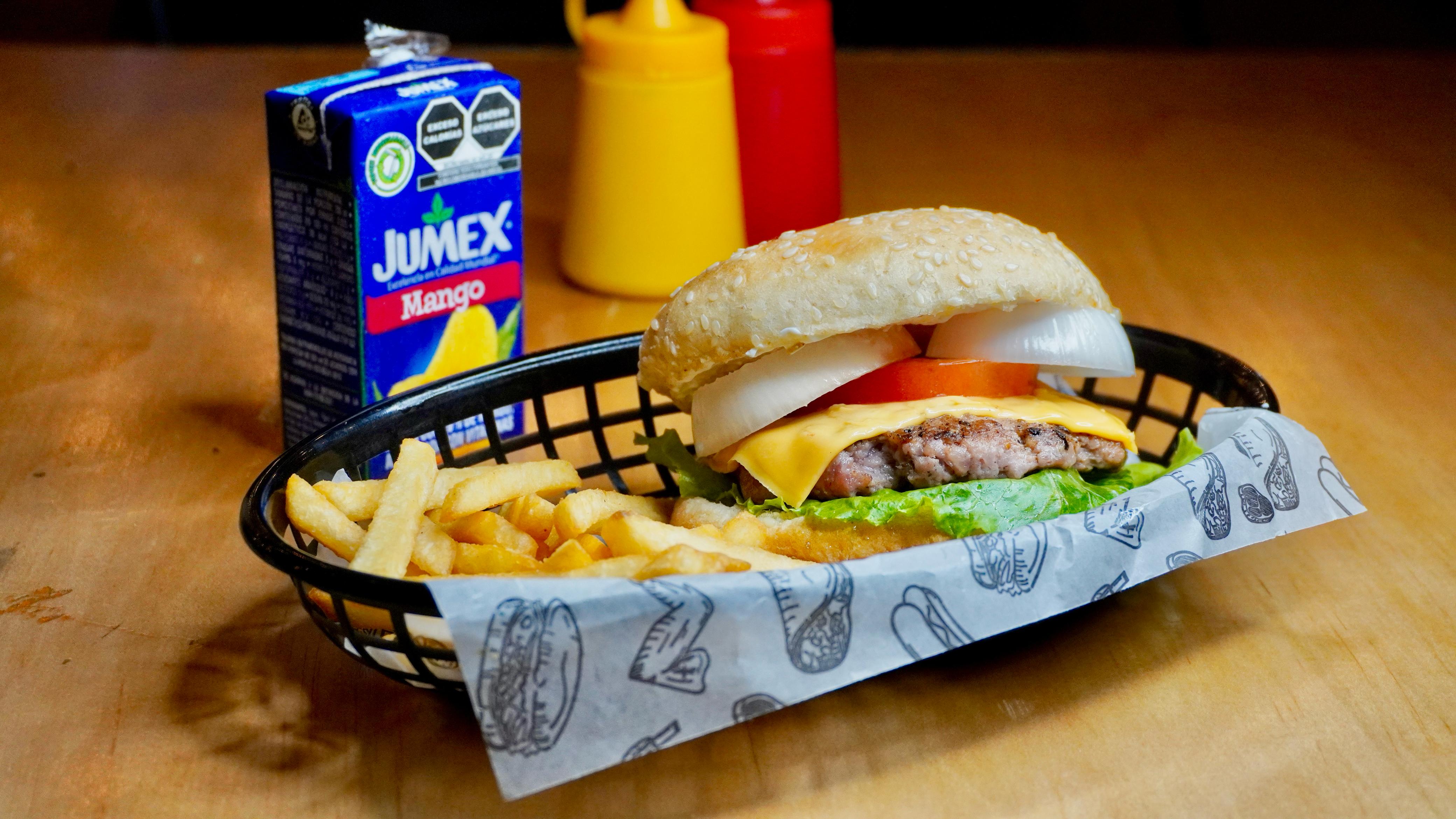 Para los niños: carne de res, queso amarillo y verdura. Una clásica en miniatura.