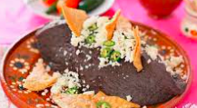 Tortilla hecha a mano, con frijoles refritos dorados a las brasas.