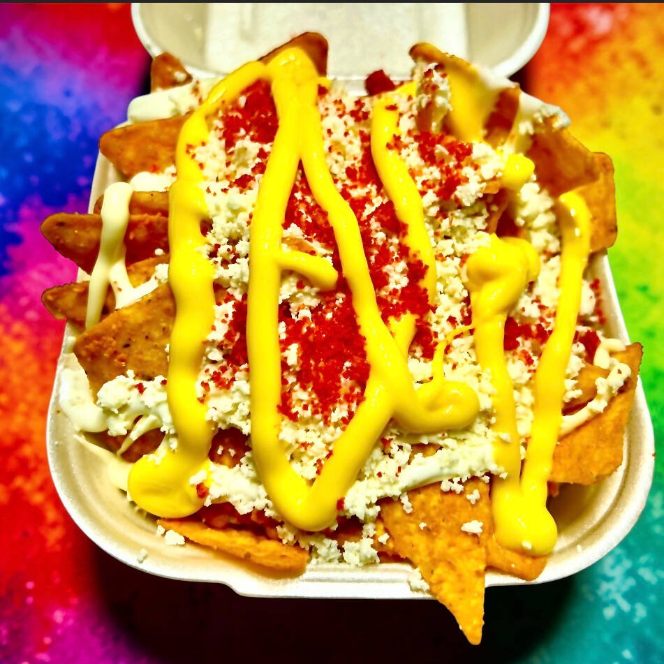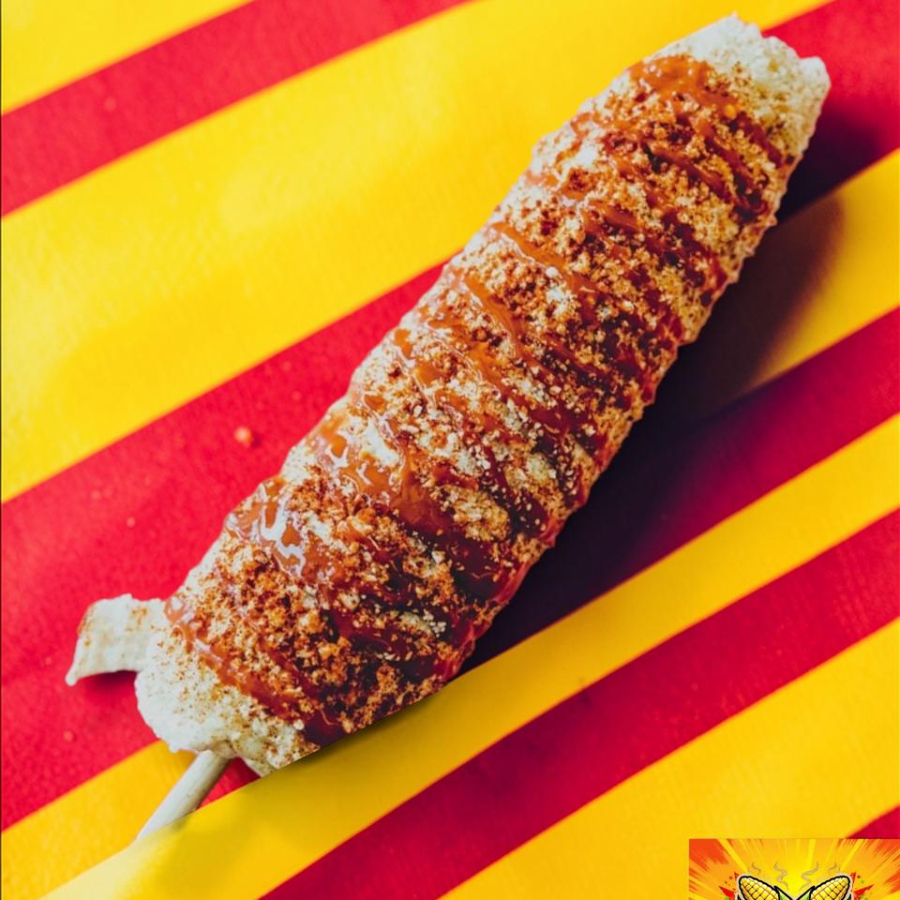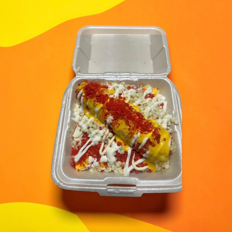 Elote entero forrado de crema, mayonesa, queso rallado, queso amarillo y Limón. Extras sabritas en polvo con granos de elote bañados y acompañados de sabritas enteras con aderezo.