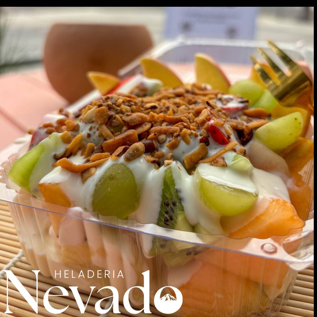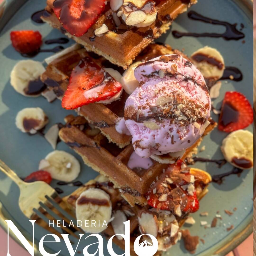 Waffle con frutas y helado