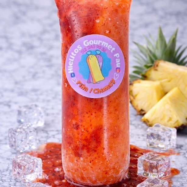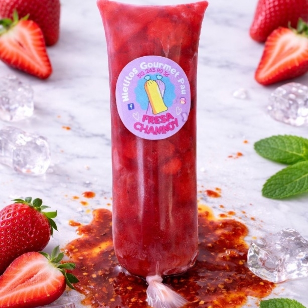 Hielito de Fresa en Leche. Fresa natural, leche entera, azucar.