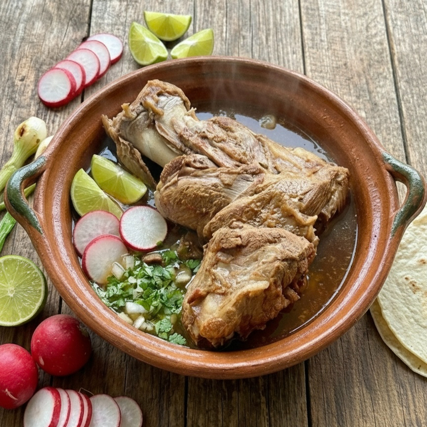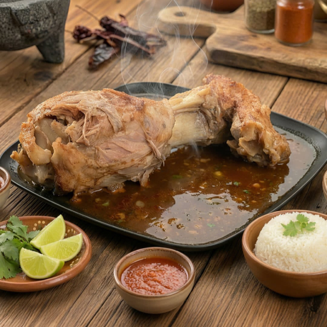 Carne de puerco al horno, cocción lenta, especias naturales y un caldo lleno de sabor que hacen de cada mordida sea una experiencia única.
