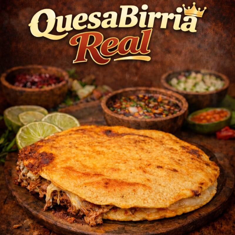 Tortilla doradita rellena de birria jugosa y queso bien derretido, crujiente por fuera y suave por dentro. Se acompaña con salsas, limón y verdura para darle el toque perfecto. Un antojo intenso, lleno de sabor y bien servido 🔥🤤 de res y puerco!