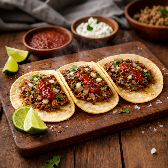 Taco de res al horno, cocción lenta, especias naturales y un caldo lleno de sabor que hacen de cada mordida sea una experiencia única.