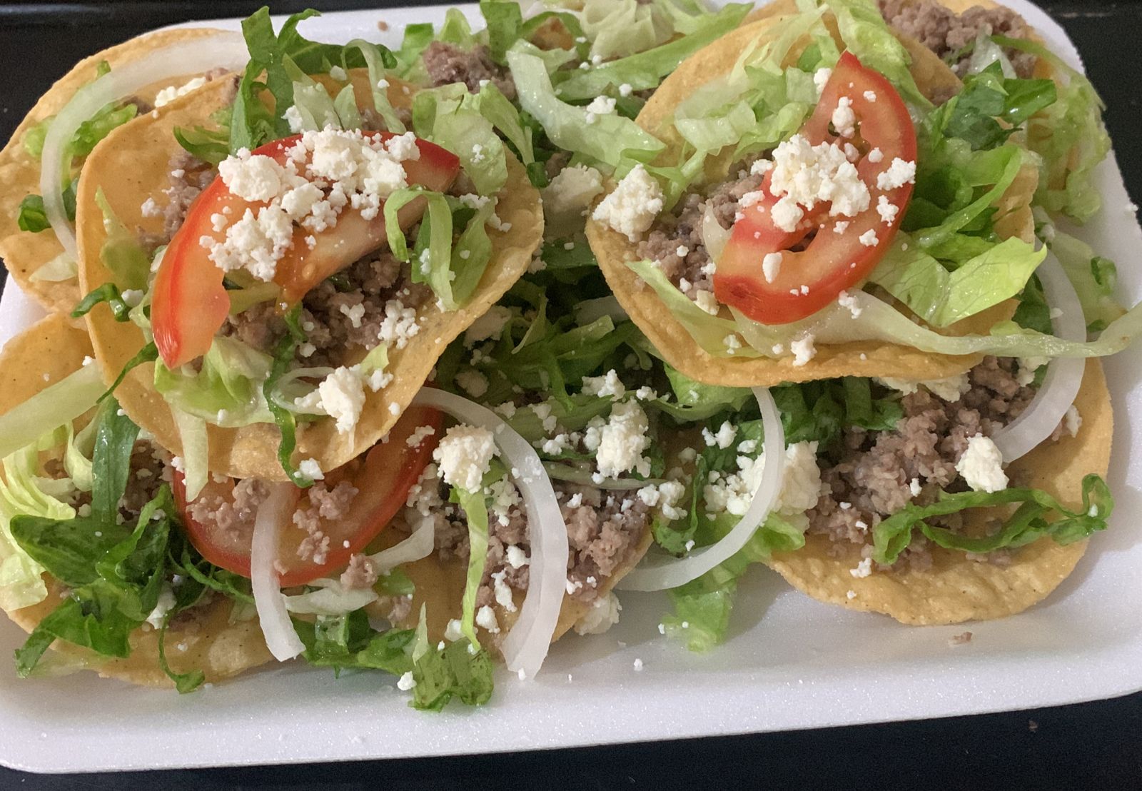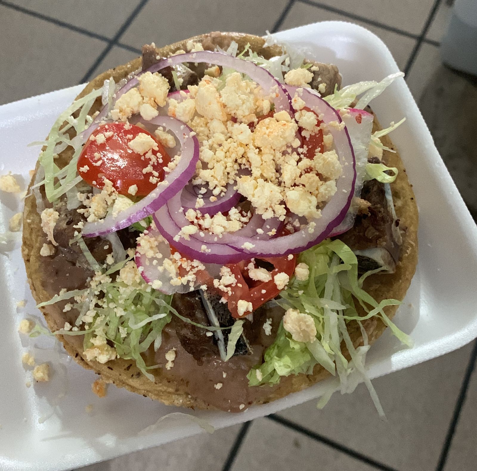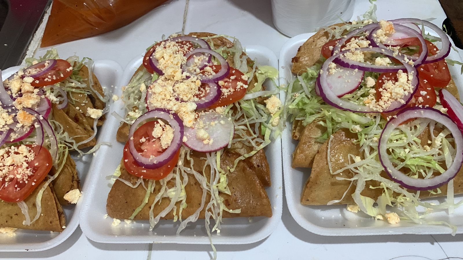 3 Piezas con frijoles, carne y queso asadero.