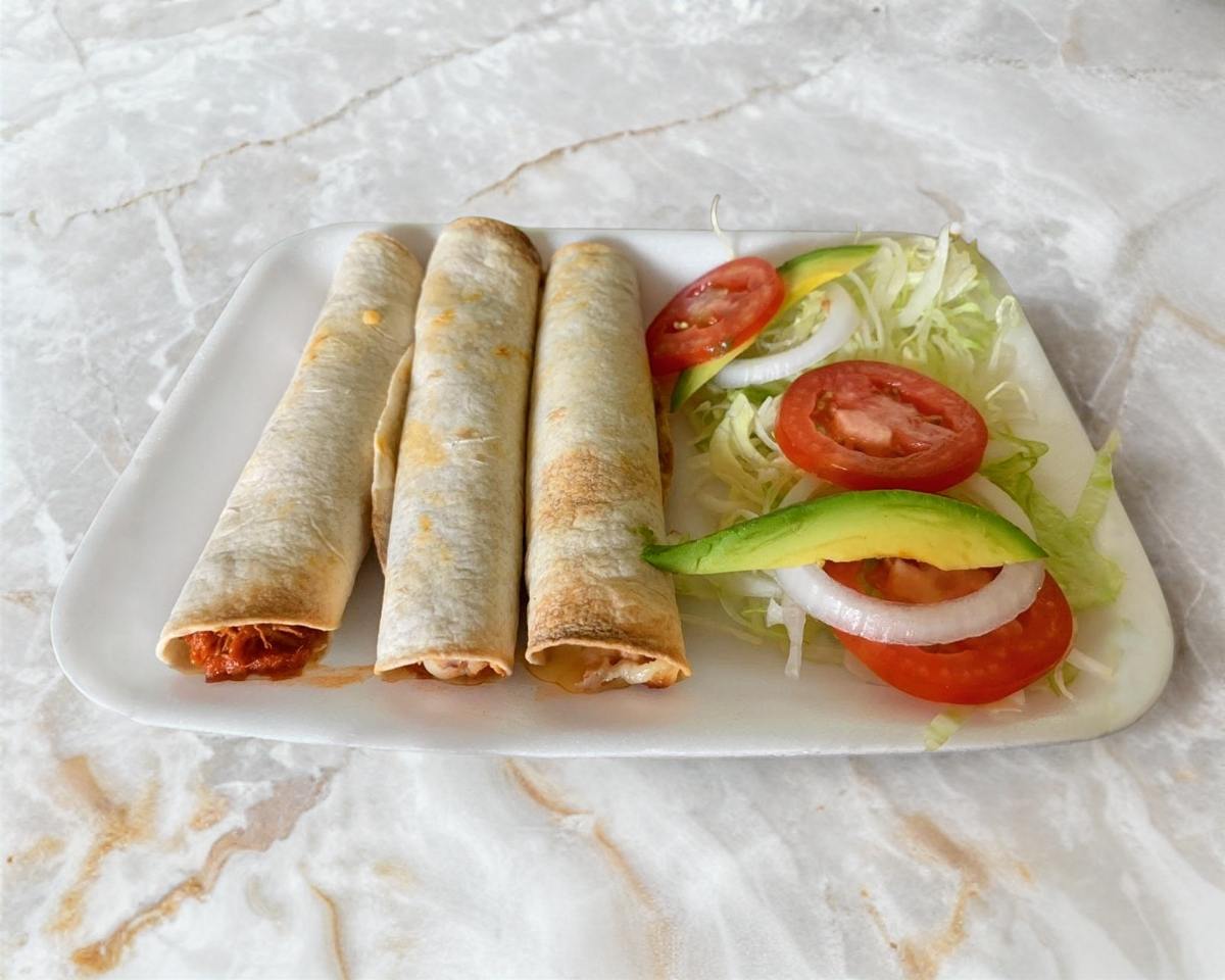 5 enchiladas pueden ser de pollo o panela y van granitadas