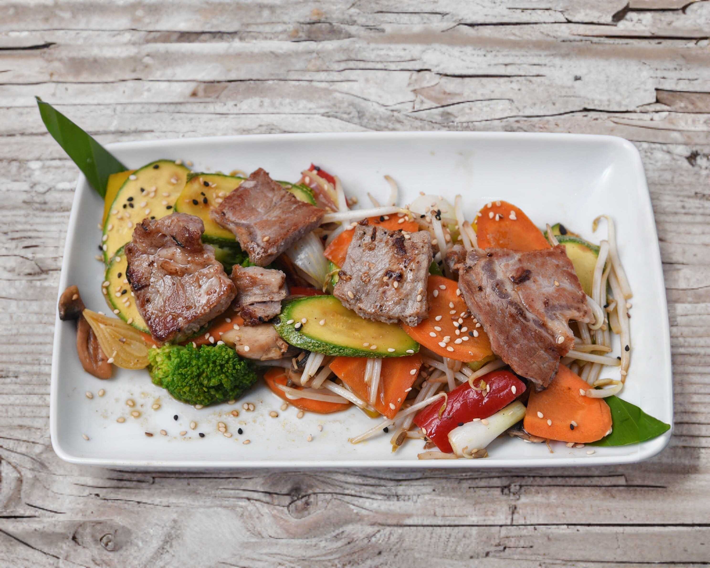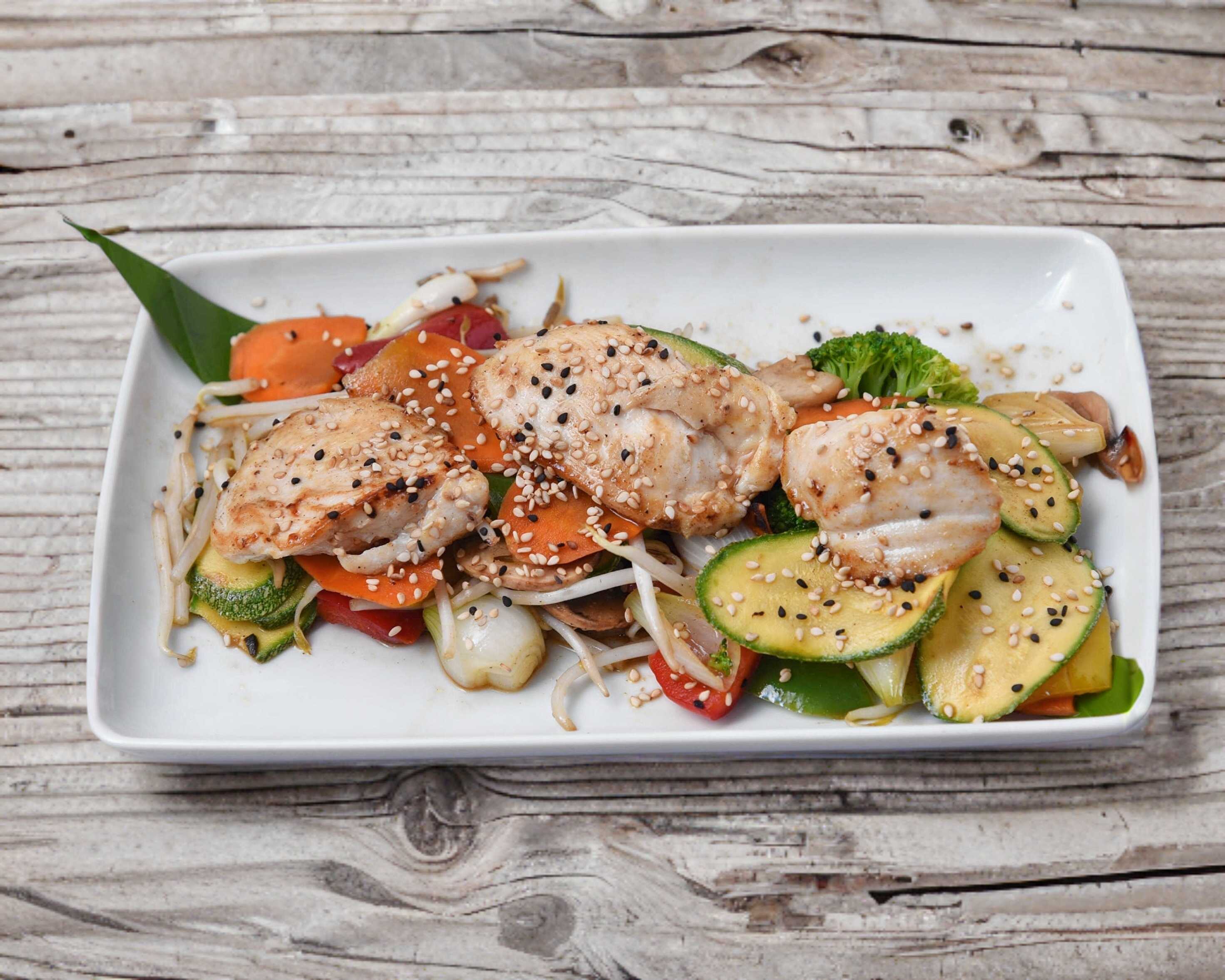 Verduras a la plancha con pollo.