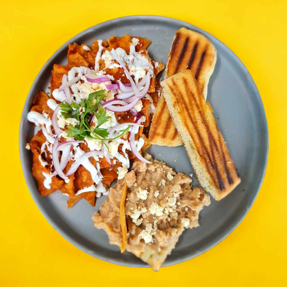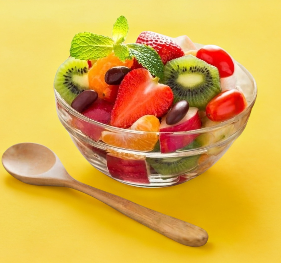Huevos Revueltos, Ensalada, Pan de caja y Mini Bowl de Frutas.