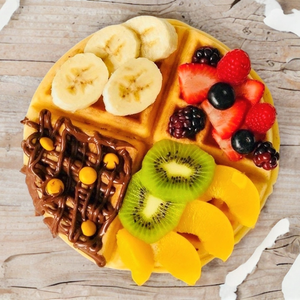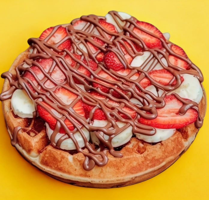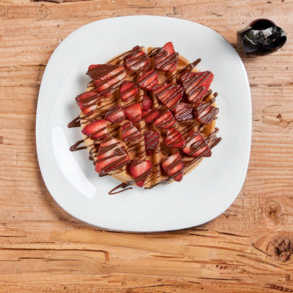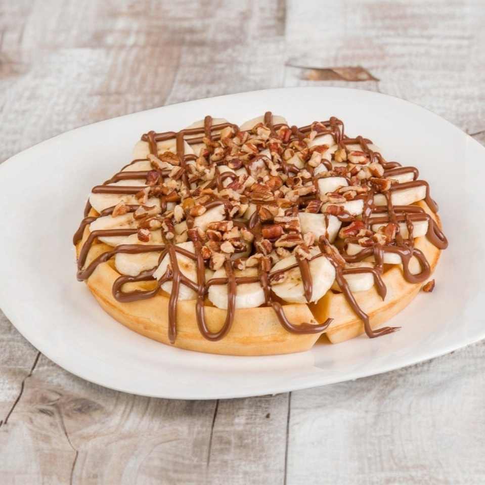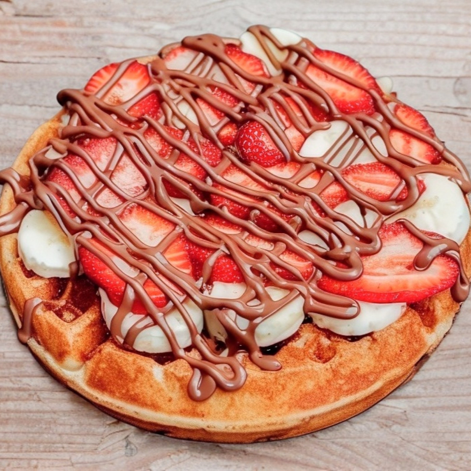 Waffle con un Mix de Frutas de Temporada y Nutella.