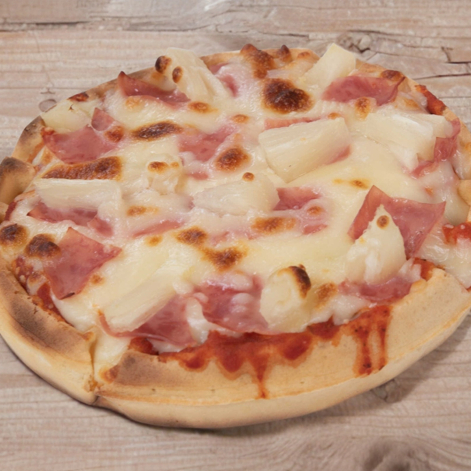 Waffle con Queso Mozzarella, Jamón y Piña.