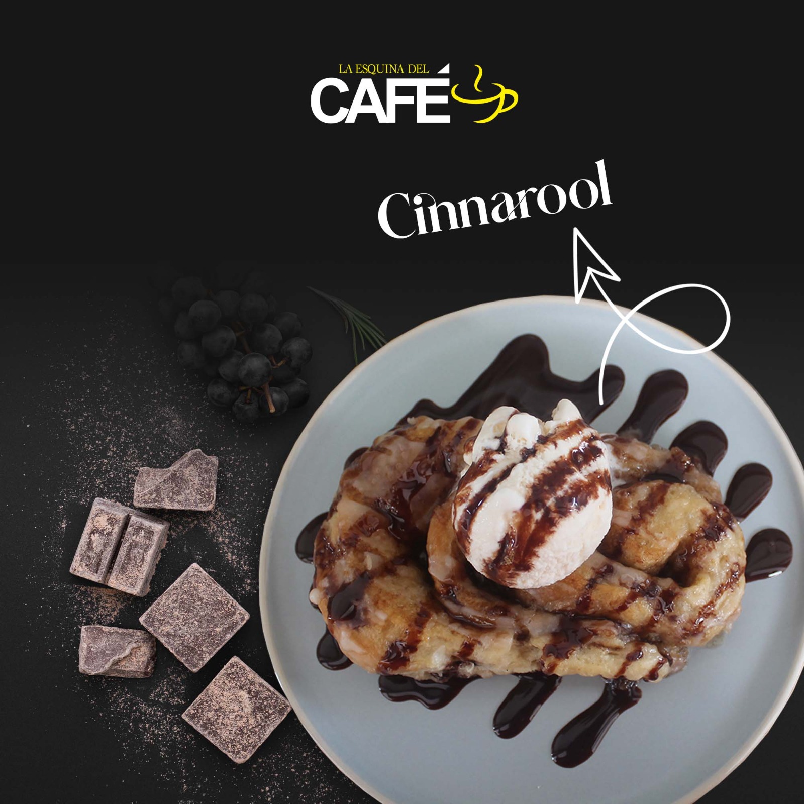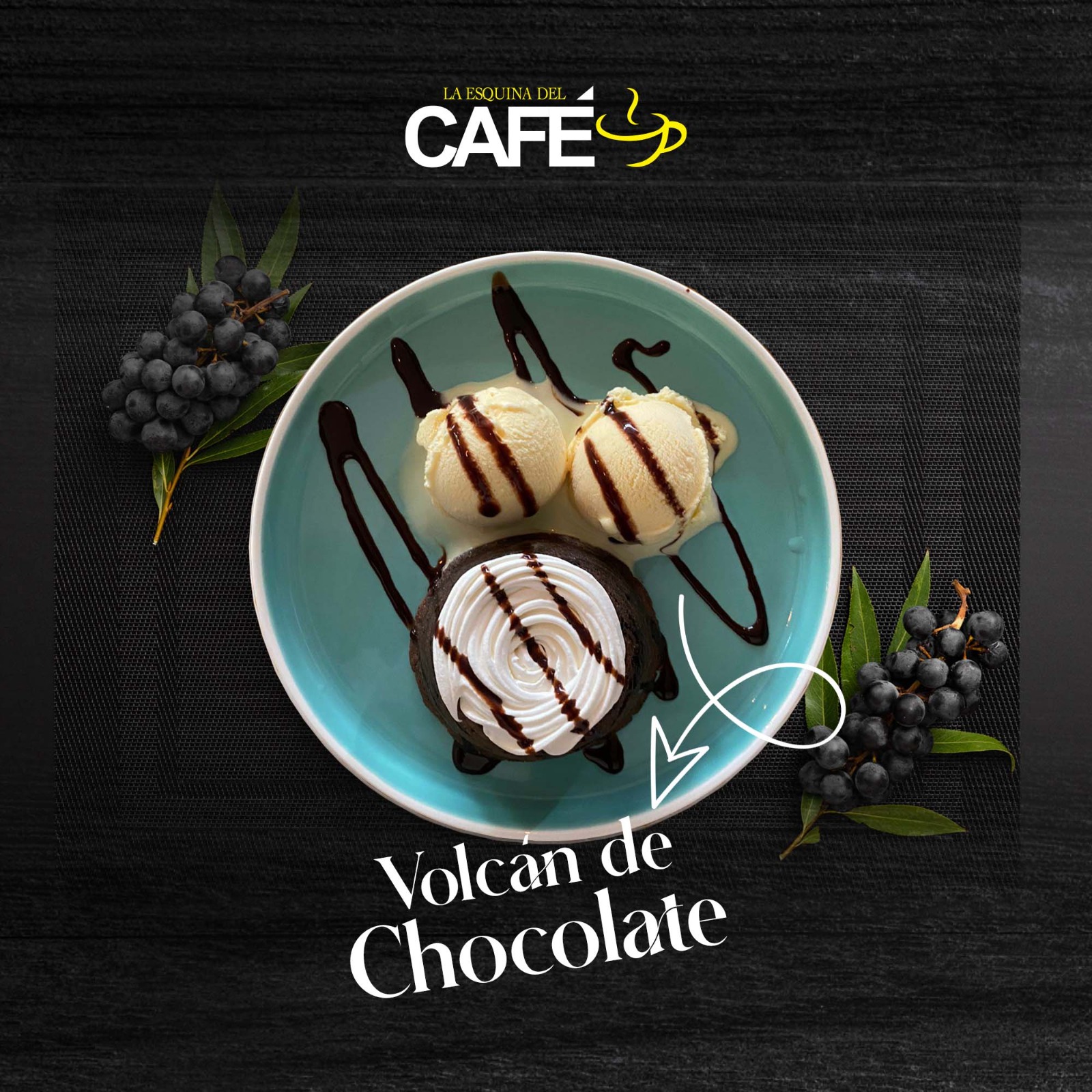 Calientito panecillo de chocolate con suave centro, acompañado de helado de sabor fresa.