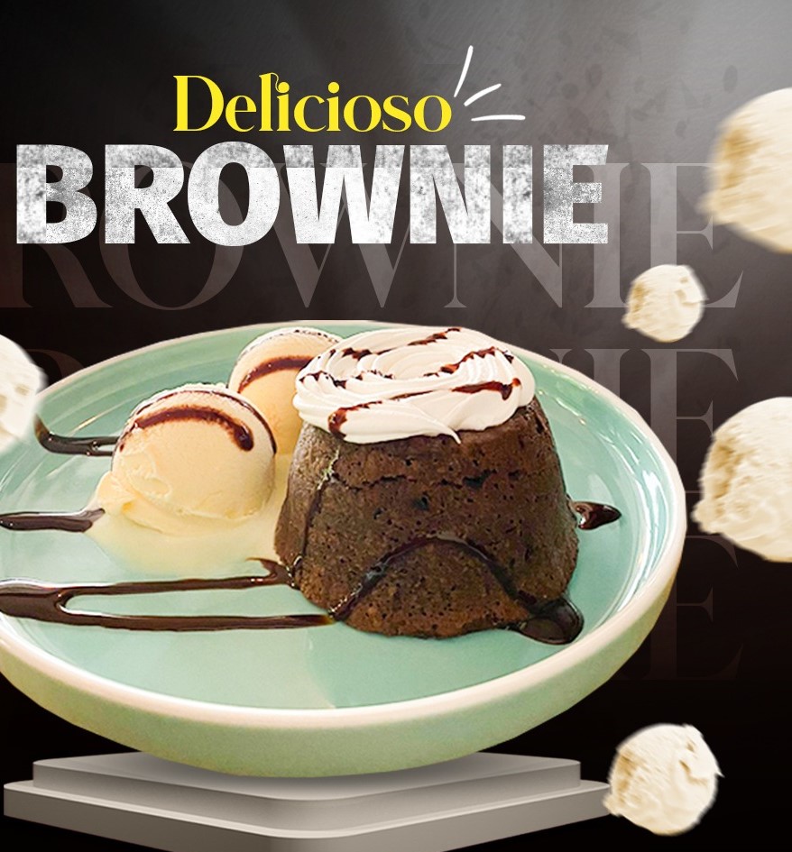 Bizcocho de chocolate y nieve de sabor que tu elijas.