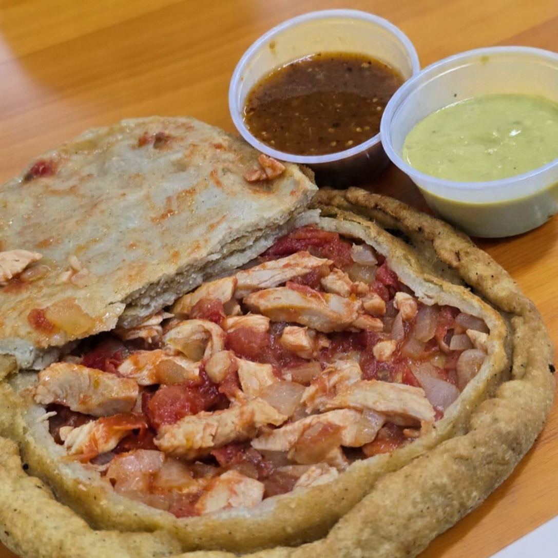 Rellena de nopales guisados con sabor casero, frescos y bien sazonados.