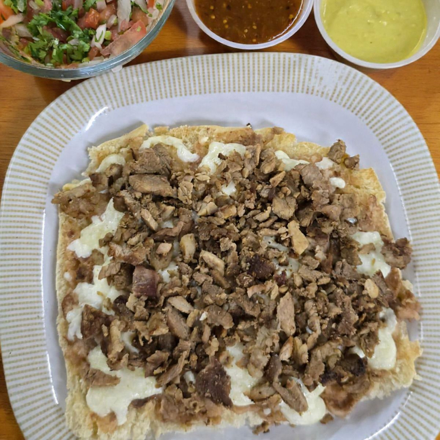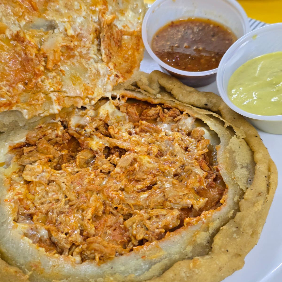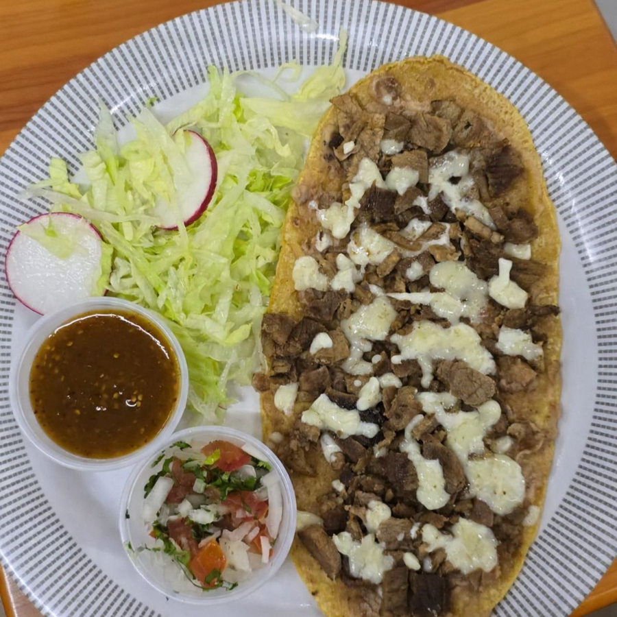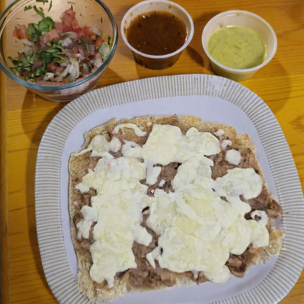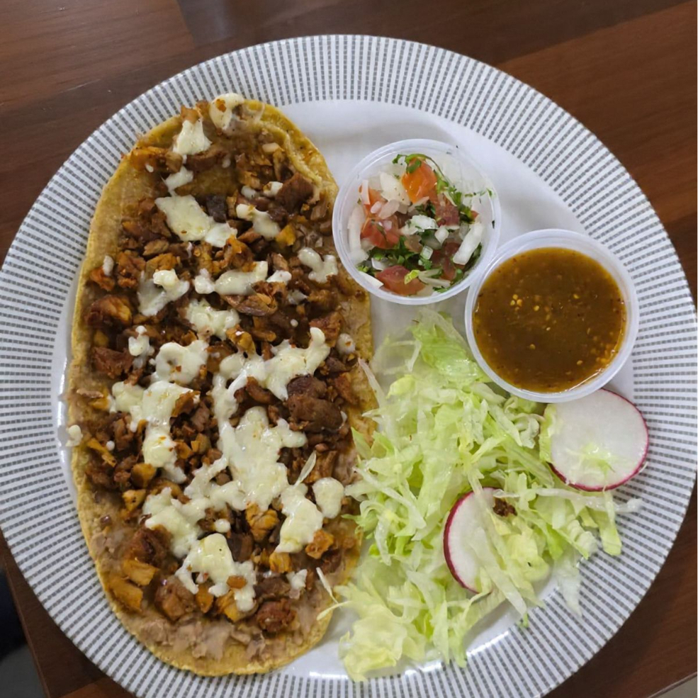 Acompañado de salsa roja, pico de gallo fresco y lechuga, queso asadero derretido.