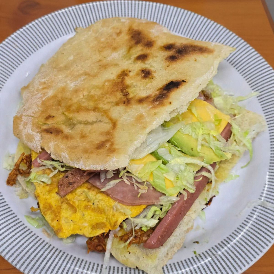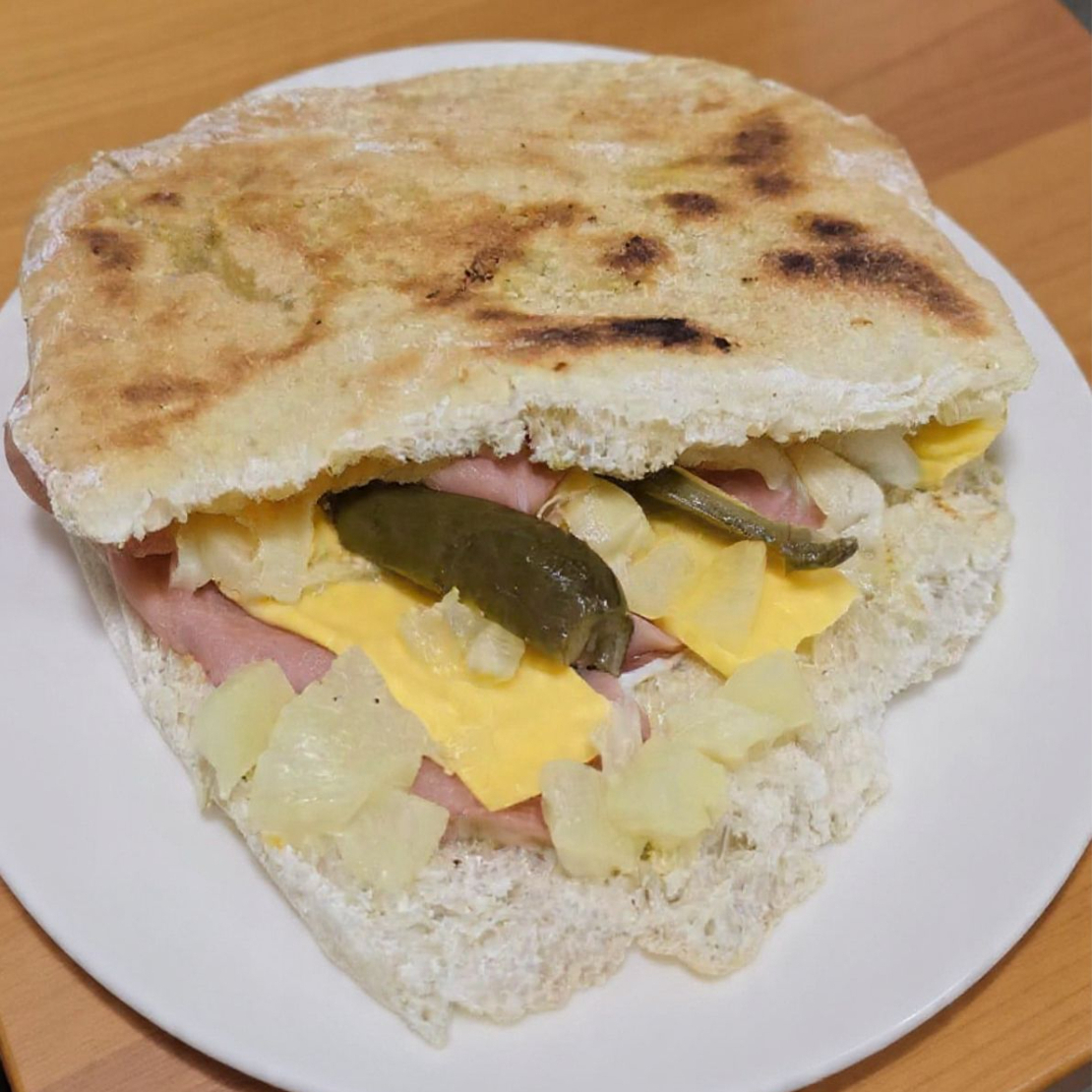 Pan suave relleno de jamón jugoso, acompañado de ingredientes frescos que resaltan su sabor clásico y delicioso.