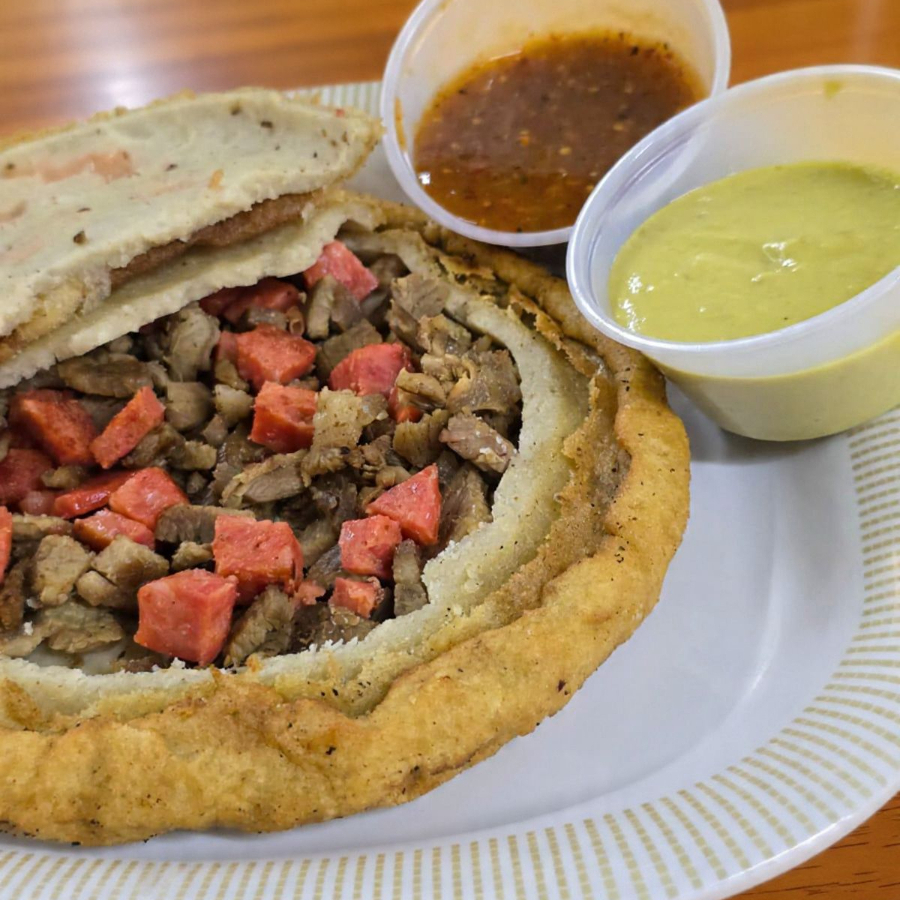 Deliciosos tacos rellenos de frijoles, carne, chicharrón suaves y bien servidos. Preparados al momento y llenos de sabor casero.