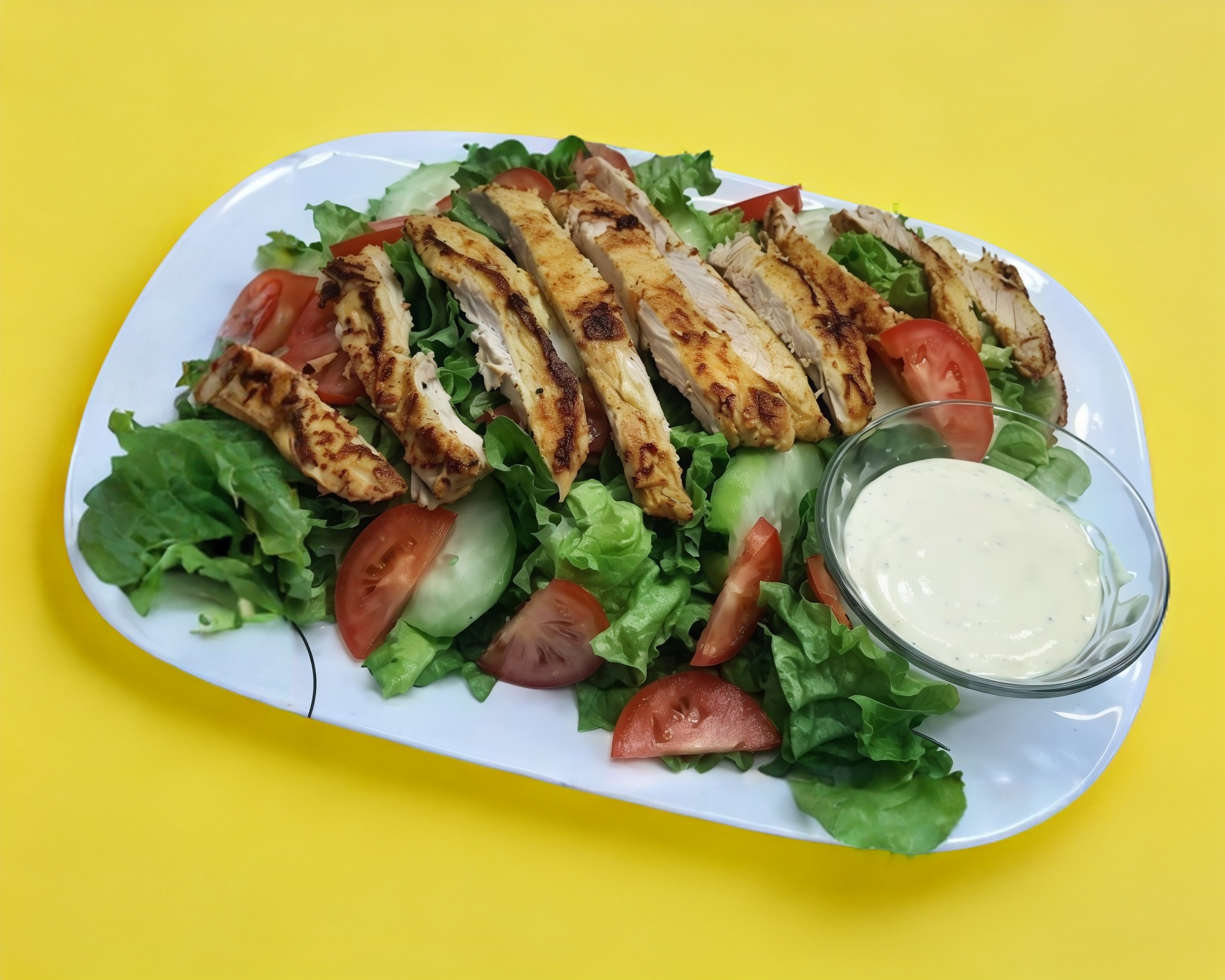 Ensalada De Verduras (Calabacita, Papa, Chayote Y Zanahoria Con 250 Gramos De Pollo A La Plancha) En Una Cama De Lechuga, Con Aderezo Ranch Y Aderezo De Casa. (EL PESSO DEL POLLO ES EN CRUDO)