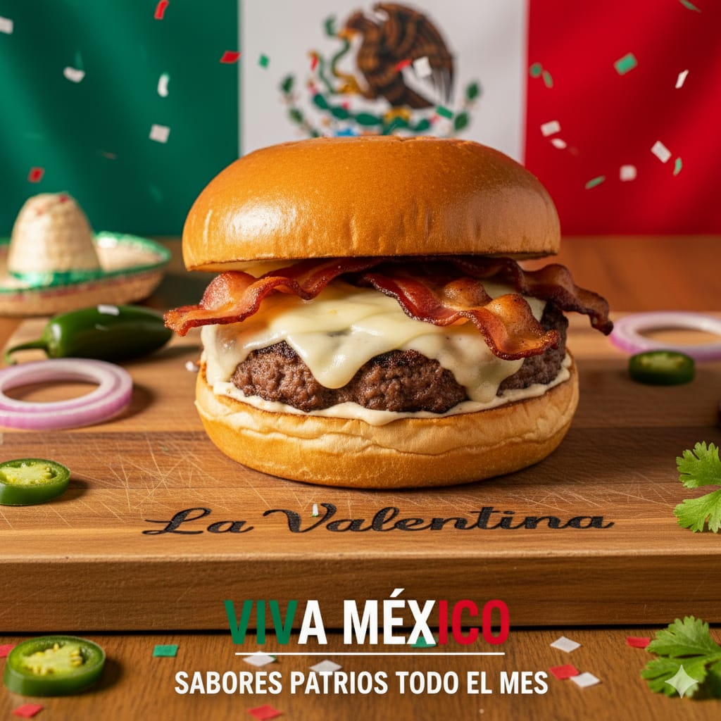 Carne de res 100% (120 gr) receta casera, pan grande, mezcla de queso asadero, queso manchego, queso …