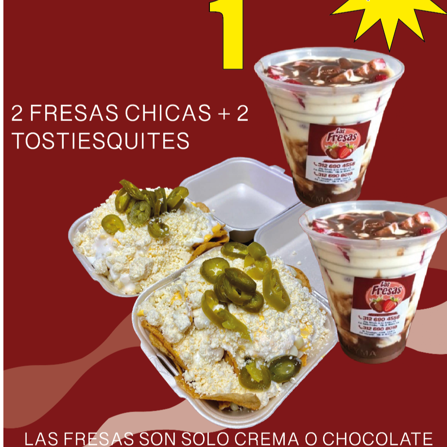 2 Fresas Chicas con Crema y Chocolate + 2 Tostiesquites
