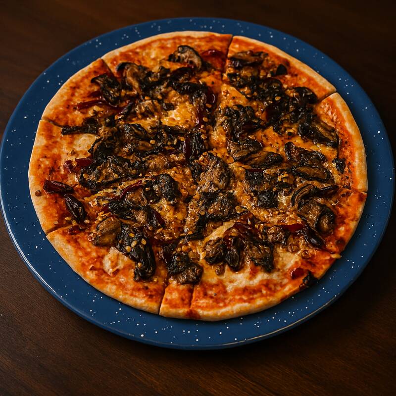 Pizza de sartén (22cm) Champiñones naturales, champiñones al ajillo, peperoni