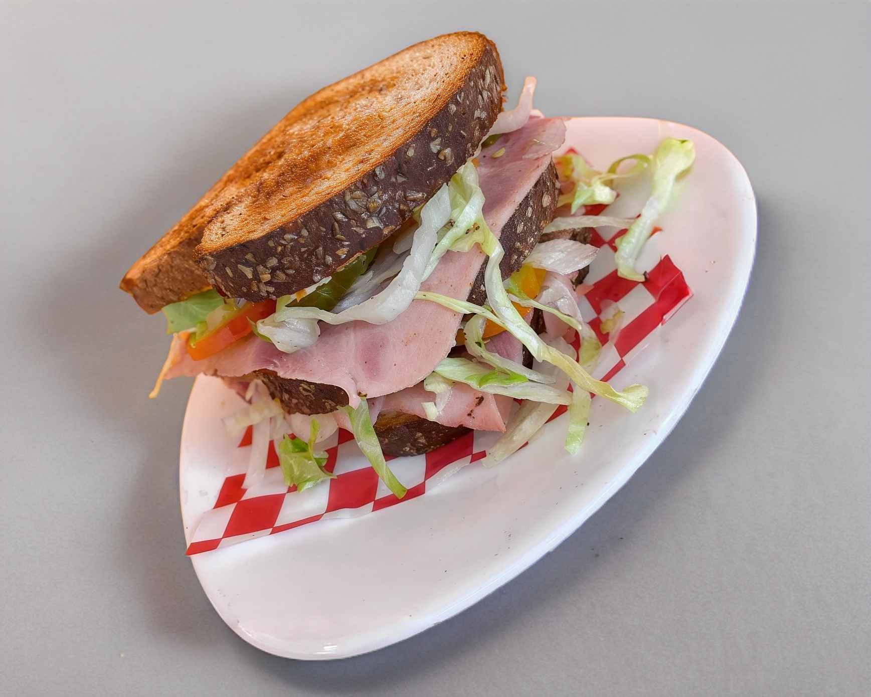 Dos piezas de pan integral o multigrano, puede ir preparado con lomo natural, lomo adobado, salchicha, jamón, queso panela, queso amarillo o queso asadero. Acompañado de mayonesa, lechuga, jitomate, cebolla y chiles jalapeños.