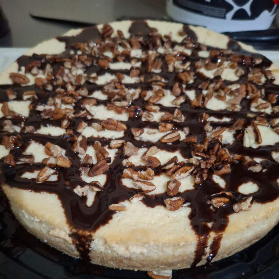 rebanada de pay de queso con nuez y chocolate