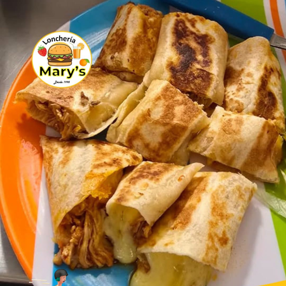 Tortilla de harina rellena de queso asadero con lomo adobado