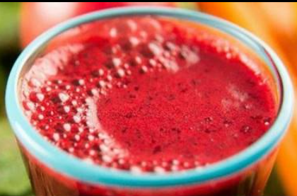 Vaso de jugo rojo con naranja, zanahoria y betabel, elige tu tamaño preferido.