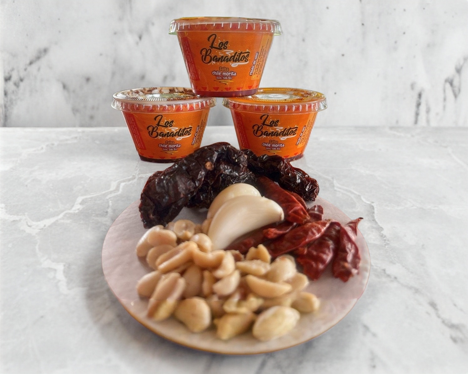 Salsa morita con aceite, ajonjolí y cacahuate natural