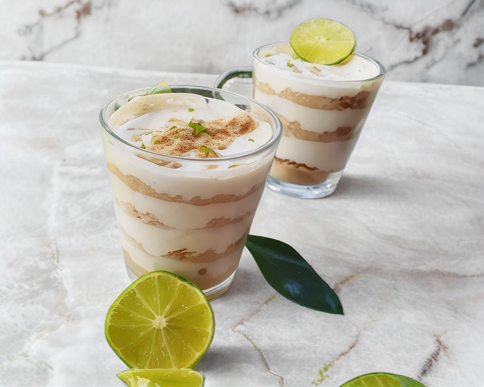 Postre casero preparado con galletas marías acomodadas en un molde y bañadas con una mezcla de leche condensada, leche evaporada y jugo de limón.