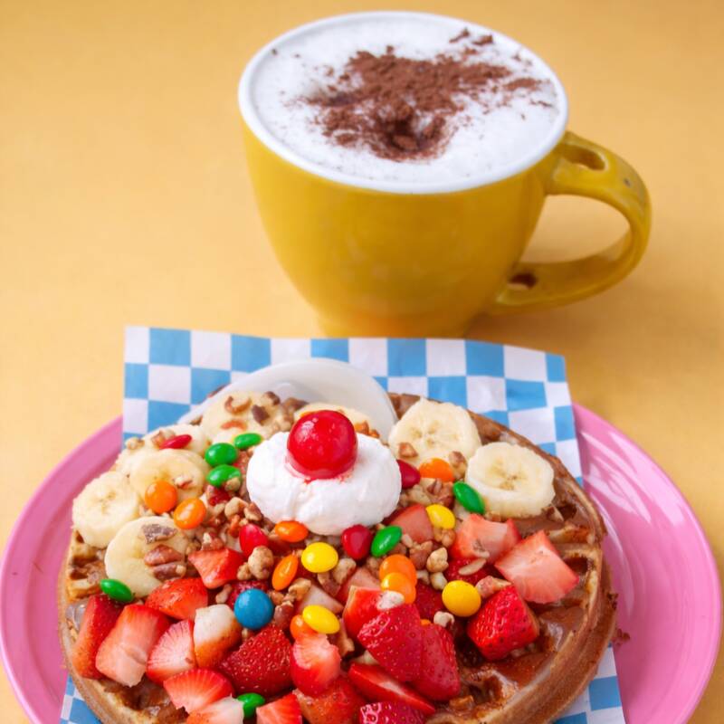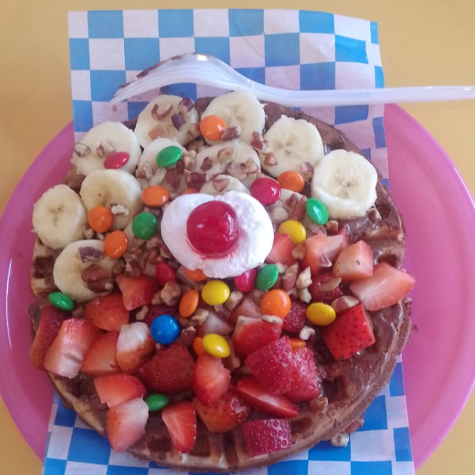 1 waffle + 1 Base + 1 Fruta + 1 Topping