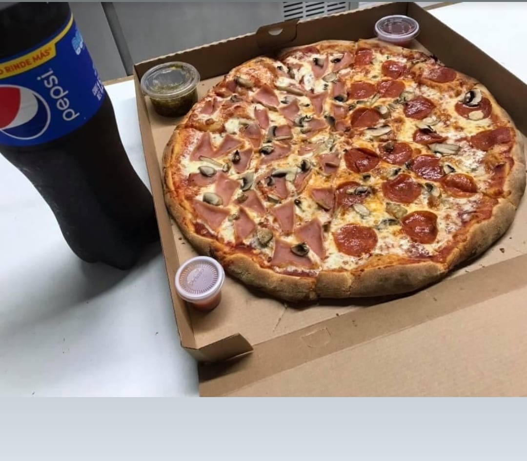 Deliciosa pizza Super Grande de 2 ingredientes y Pepsi de 1.75 litros con chimichurris...
