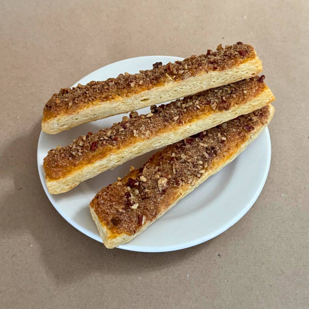 Tiras de pasta de hojaldre crujiente y azucarada, horneadas a la perfección.