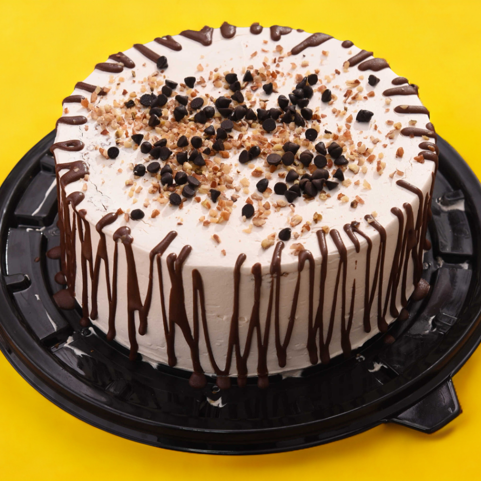 (8- 10 Personas), rico pan de café, bañado con un preparado de café y cubierto de betún de moka.