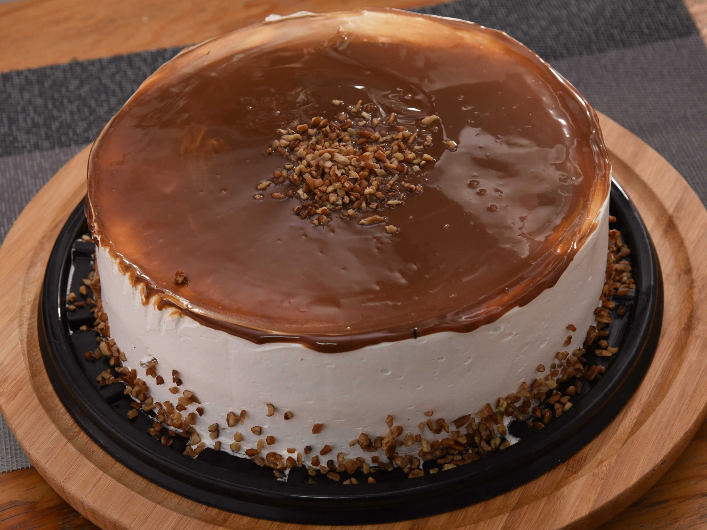 (8-10 personas), 1 capa de chocolate, 1 de flan napolitano y otra de vainilla, relleno con cajeta.