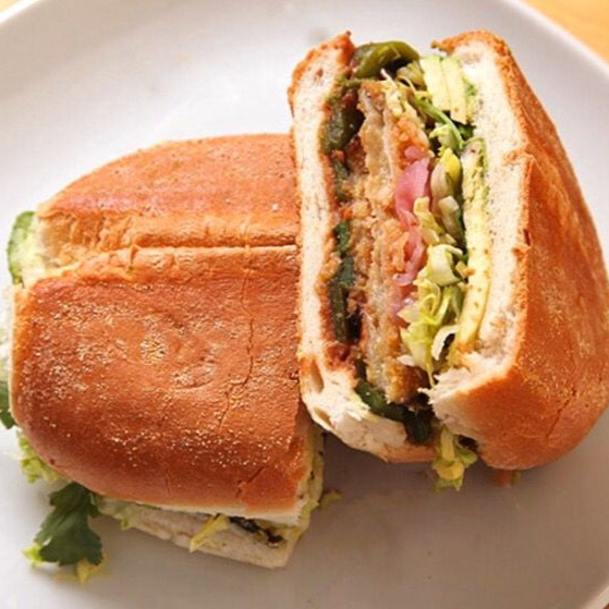 Pan blanco o integral jitomate cebolla lechuga jalapeño y aguacate, mayonesa y mostaza