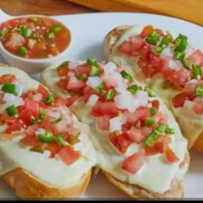 Bolillo dorado con base de frijoles queso fundido y pico de gallo