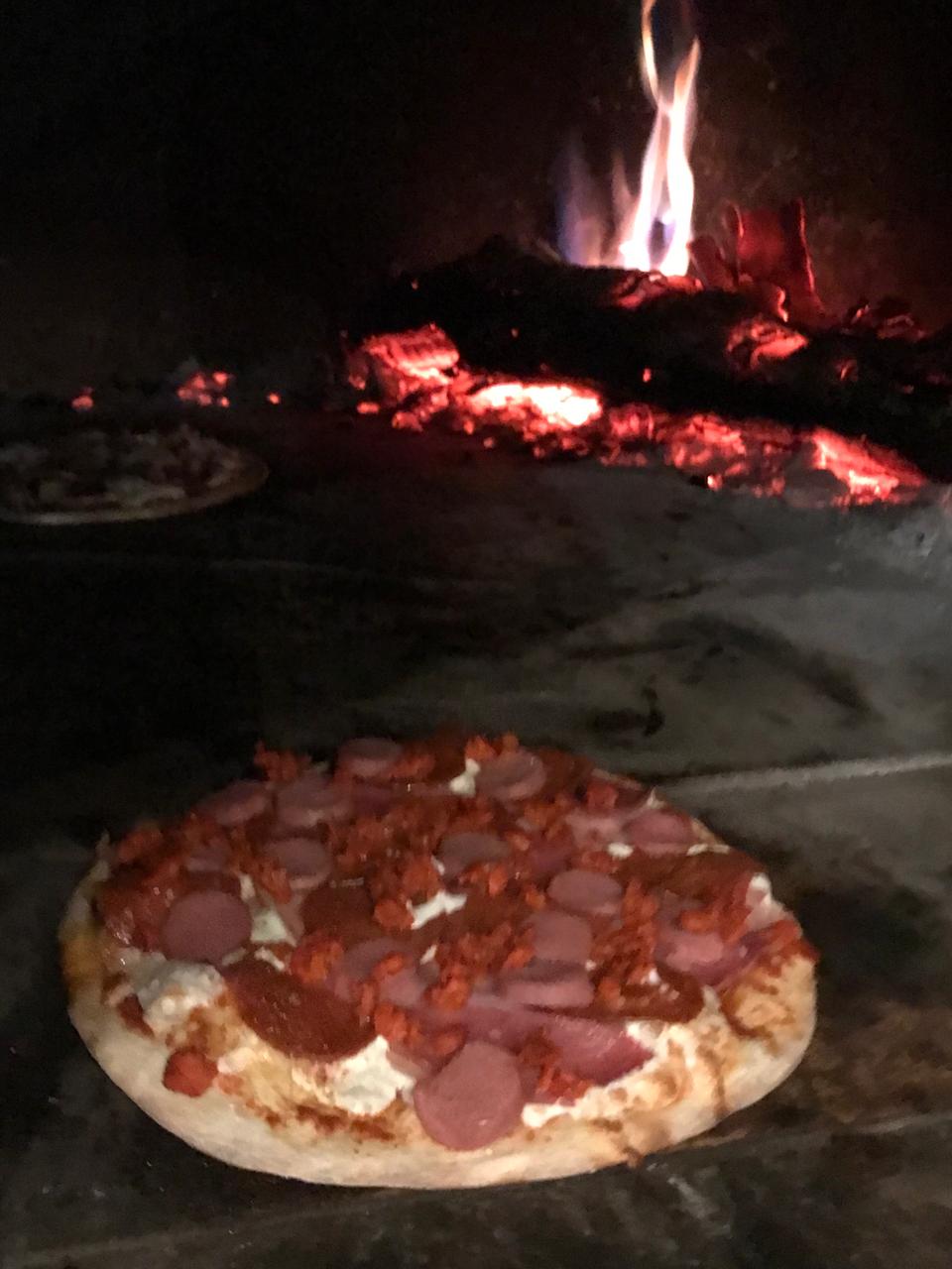 BASE DE TOMATE Y QUESO, CHORIZO, JALAPEÑOS, PIMIENTOS Y CEBOLLA.