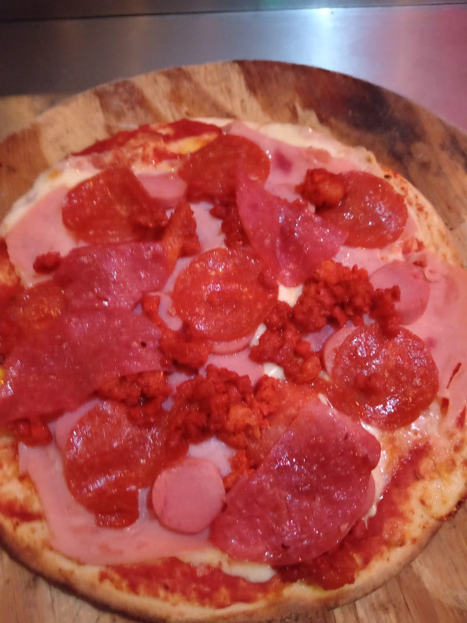 Pizza individual de 25 cm de jamón pepperoni, salchicha, salami, chorizo y especias.