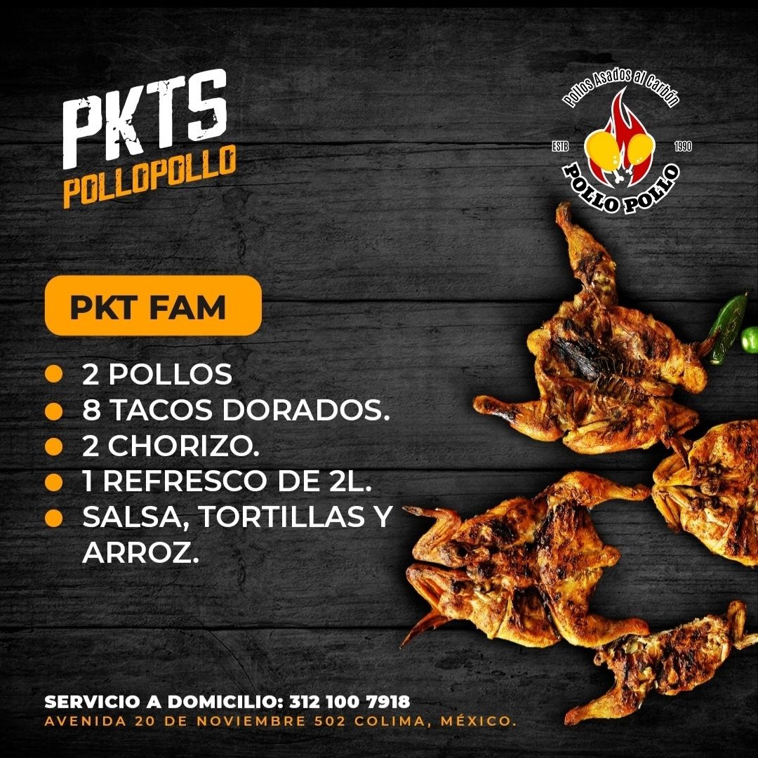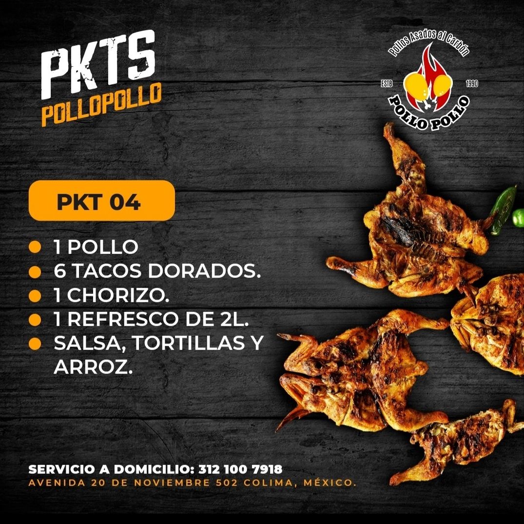 2 pollos, refresco de 2lts, chorizo