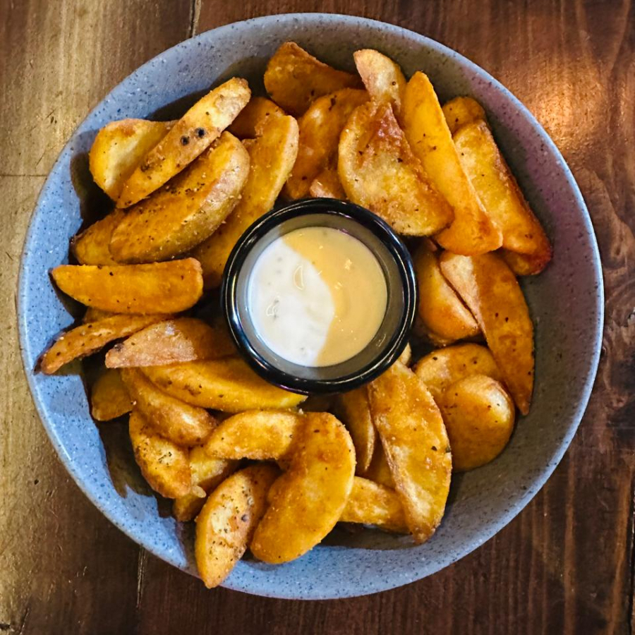 Papas de corte tradicional o gajo sazonadas con una fina mezcla de hierbas aromáticas.