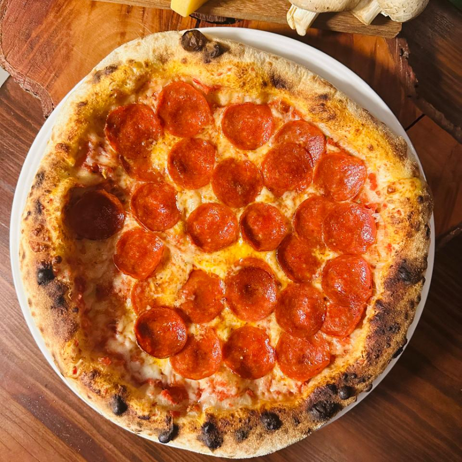 Un clásico infalible: base de tomate, abundante queso mozzarella y rebanadas de pepperoni crujiente.