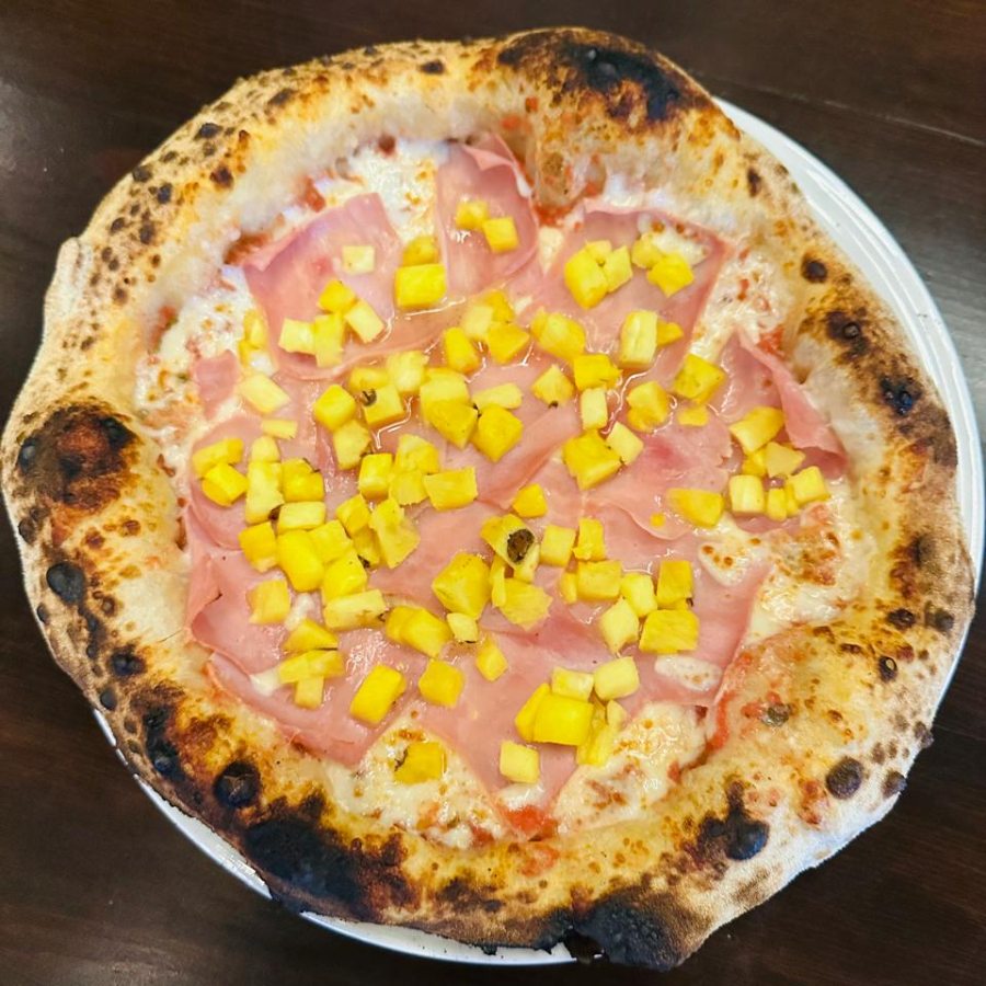 La tradicional favorita con base de tomate, mozzarella, piña dulce y jamón de pierna de alta calidad.