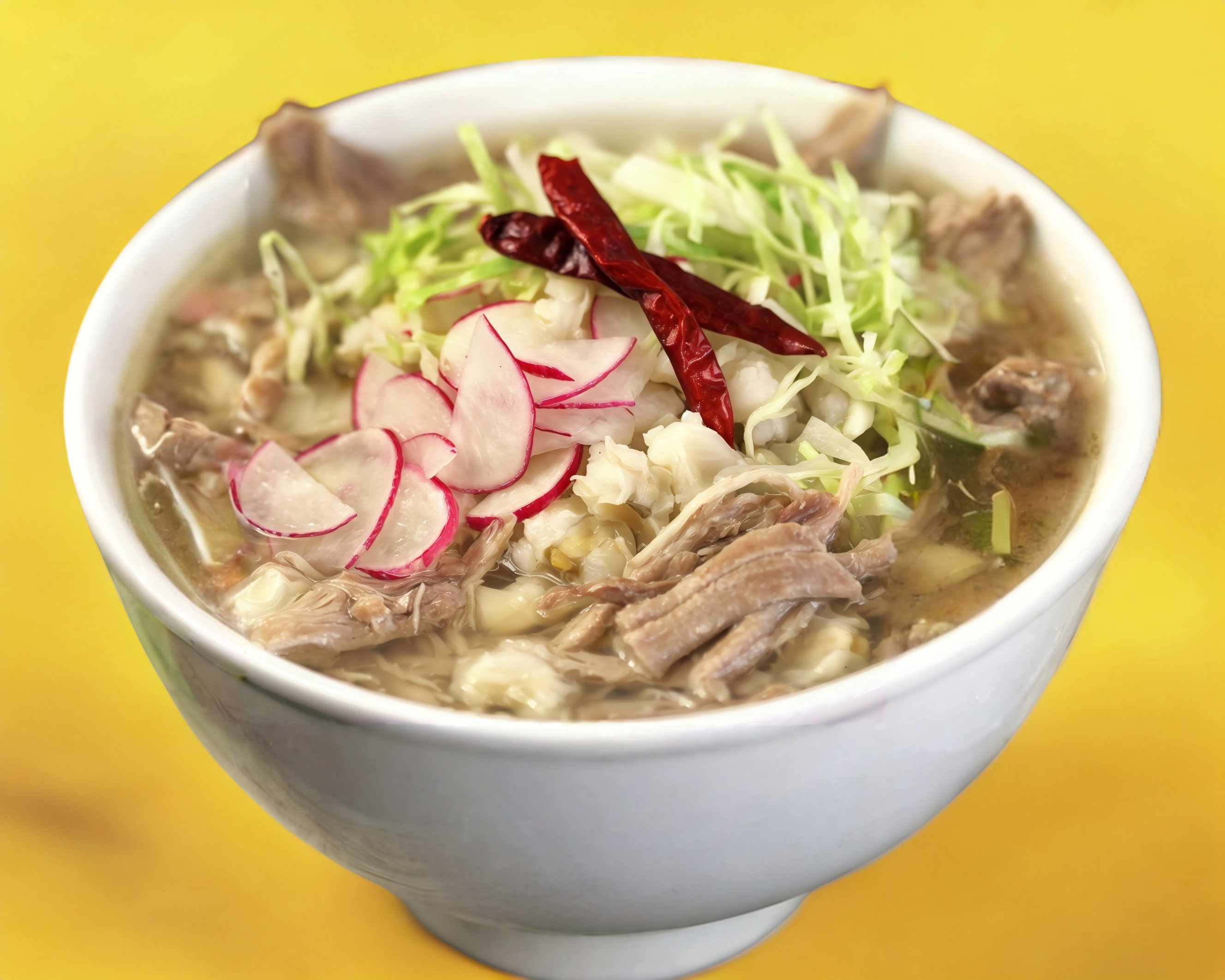 Pozole Individual, Incluye cebolla, salsa, limones, col y tostadas ( 4 piezas).