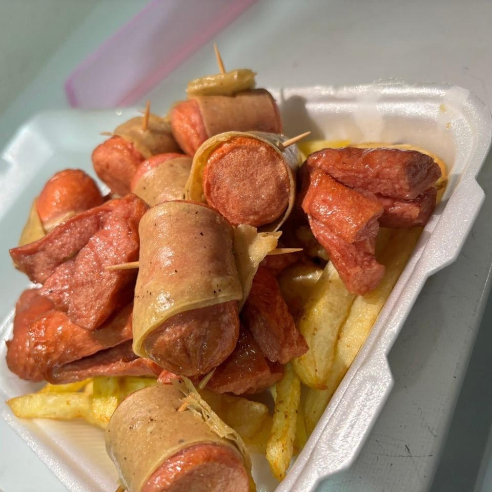 Salchichas en forma de salchipulpo y salchichas en vuelta en tortilla crujientes