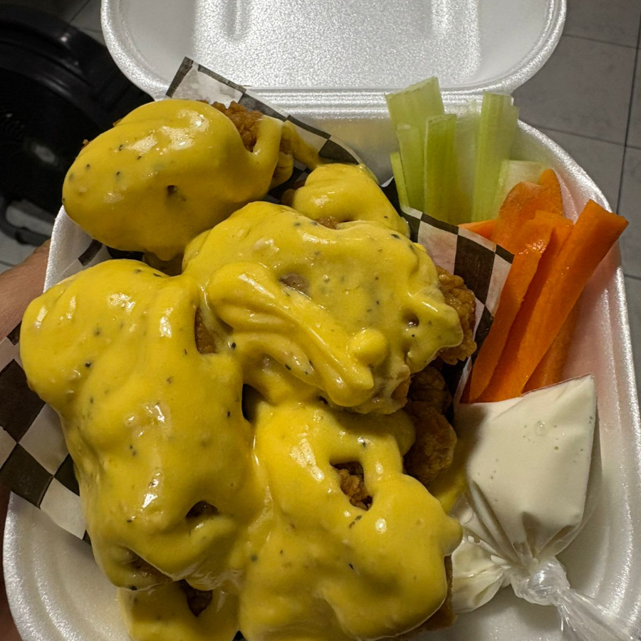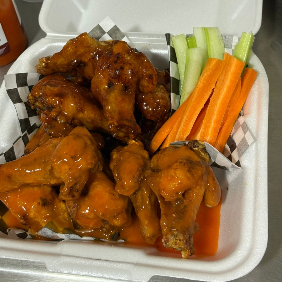 1 kilo de alitas salsa a elegir ,apio ,zanahoria y aderezo ranch