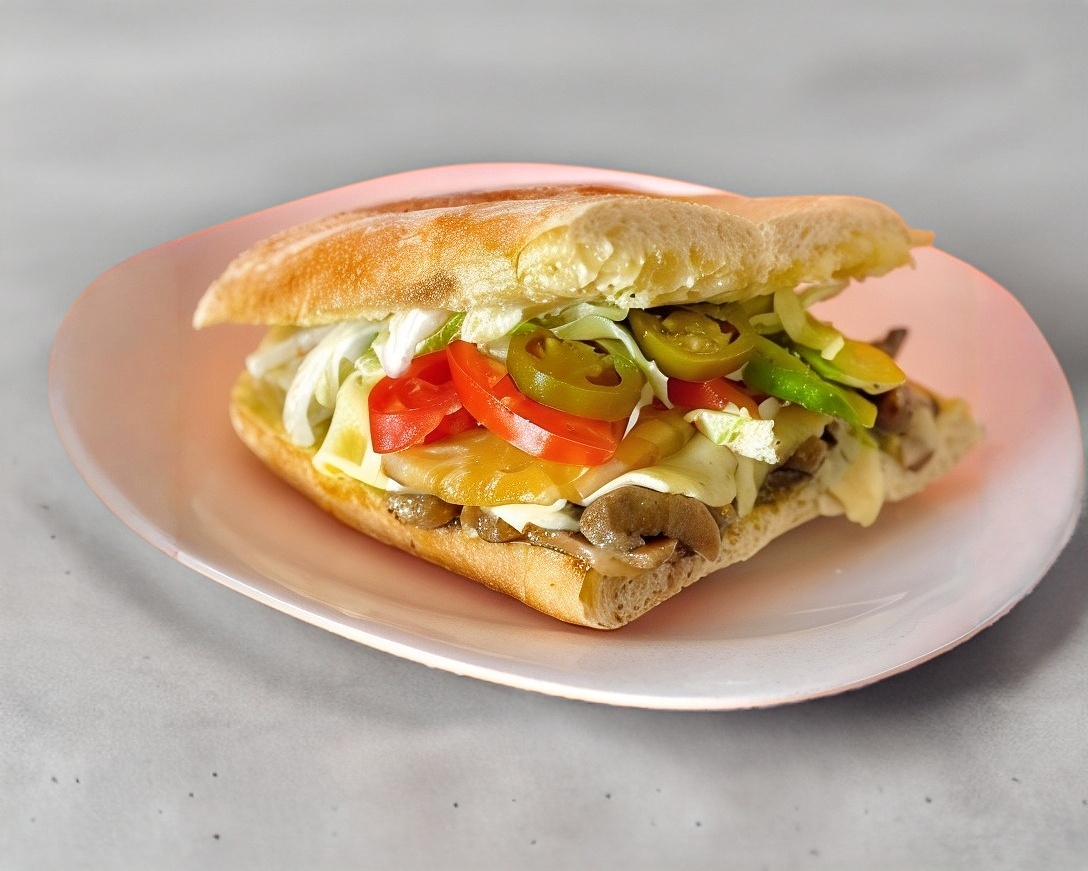 Tortilla de Harina con Queso Asadero, Jamón, Queso Amarillo, Lechuga, Jitomate, Cebolla y Chile Jalapeño