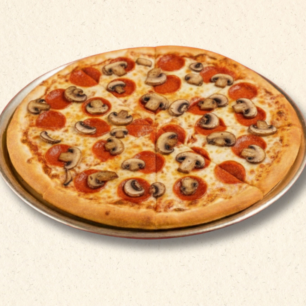 Clásica con pepperoni y champiñones frescos. 35cm, 8 rebanadas. (3 personas)