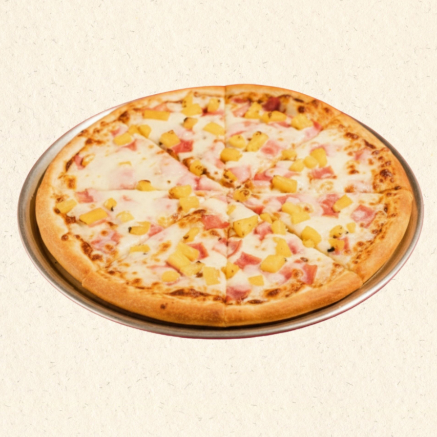 Clásica con jamón y piña. 35 cm de 8 rebanadas. (3 personas)