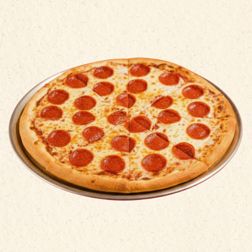 Clásica con doble pepperoni. 35 cm de 8 rebanadas. (3 personas)